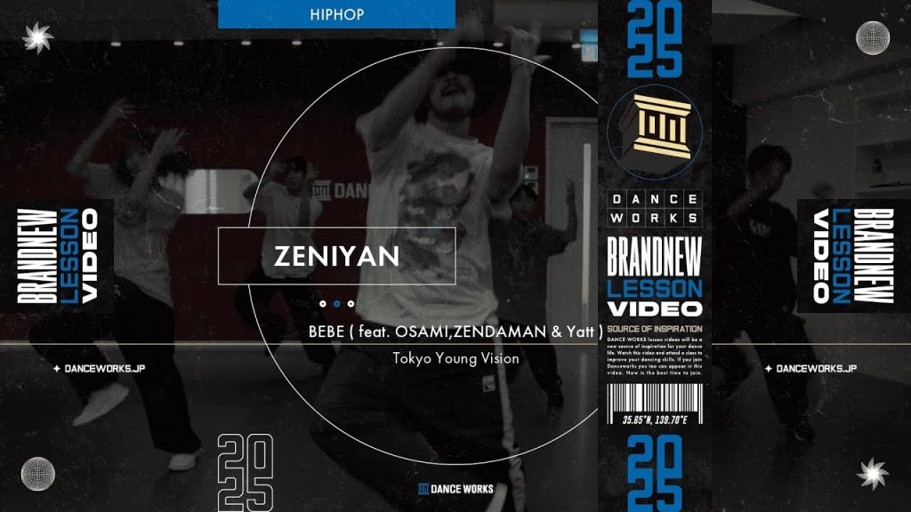 今回ご紹介したい動画は24回再生されている「ZENIYAN – HIPHOP ” BEBE ( feat. OSAMI, ZENDAMAN & Yatt ) / Tokyo Young Vision “【DANCEWORKS】」だ!